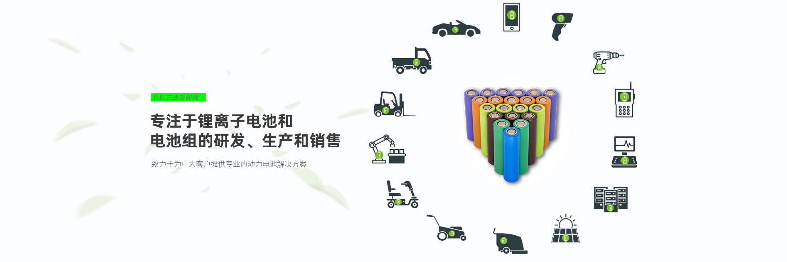 公司致力于高品質鋰電池的開發和應用。由獲得國家科技進步二等獎、信息產業部科技進步一等獎以及國內外的技術人員組成開發團隊,融合“杰出的供方、杰出的制造、杰出的客戶”,全力打造國內外完整的產業鏈;以“杰出的團隊、杰出的品質、杰出的服務”為客戶創造價值,為綠色能源的應用創造財富。公司秉承“技術為先、品質優異、誠信經營”的發展理念,以“創民族品牌,造動力世界”為愿景,著力打造新能源動力鋰電池專業品牌。